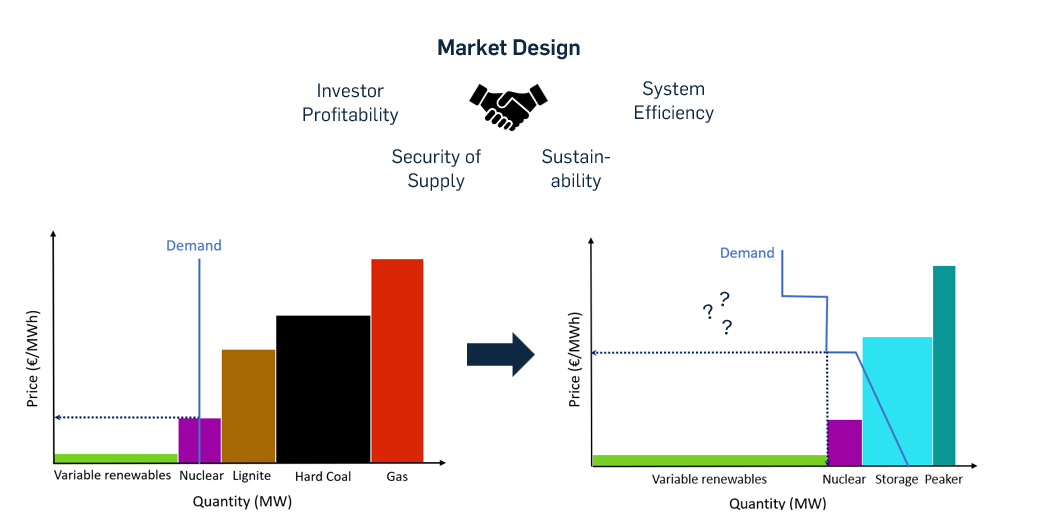 The transition to a climate-neutral energy system requires substantial investments in clean energy technologies. Achieving this objective depends on an energy market design that provides efficient investment incentives for both the demand- and supply-side while accounting for evolving framework conditions. Electricity markets, in particular, are undergoing profound structural changes as part of the energy transition: on the supply side, generation is shifting from dispatchable thermal power plants to weather-dependent renewable energy sources, while on the demand side, sector coupling is driving both increased demand and greater flexibility.